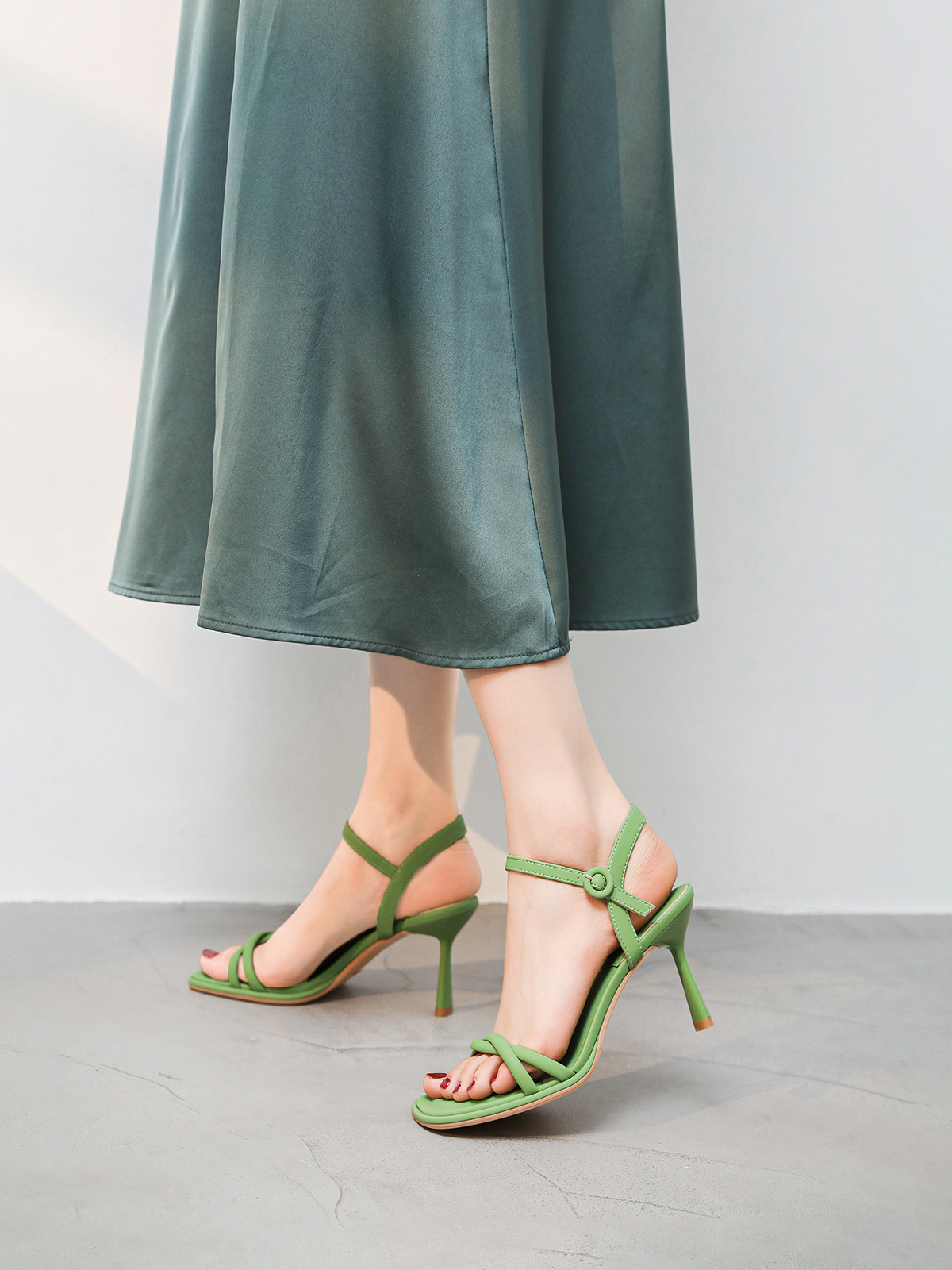 Simple style one-word open toe sandals for women ins niche high heels stiletto summer new style