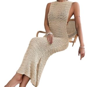 Side beach dress European and American hollow knitted long skirt suspender backless sexy dress Fabric name: cotton Pattern: solid color […]
